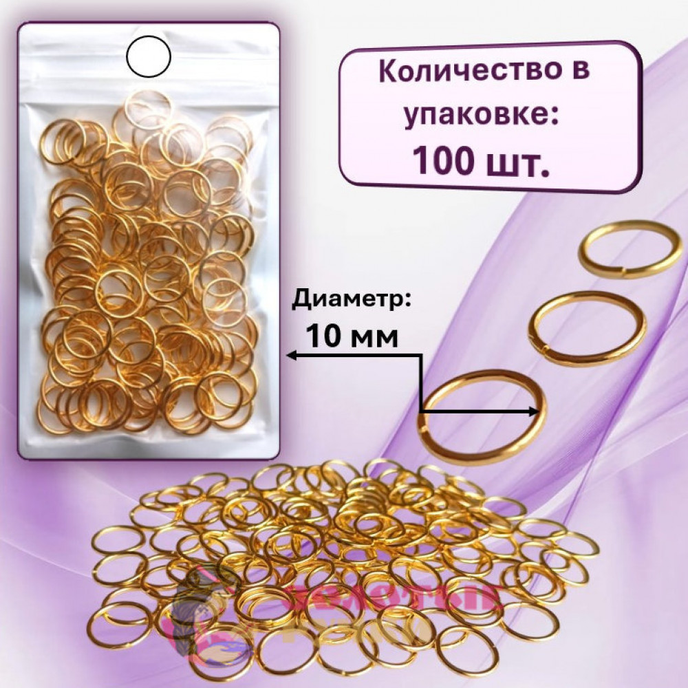 Кольцо соединительное для бижутерии. Диаметр: 10 мм. Цвет: золото. Количество в упаковке: 100 шт.