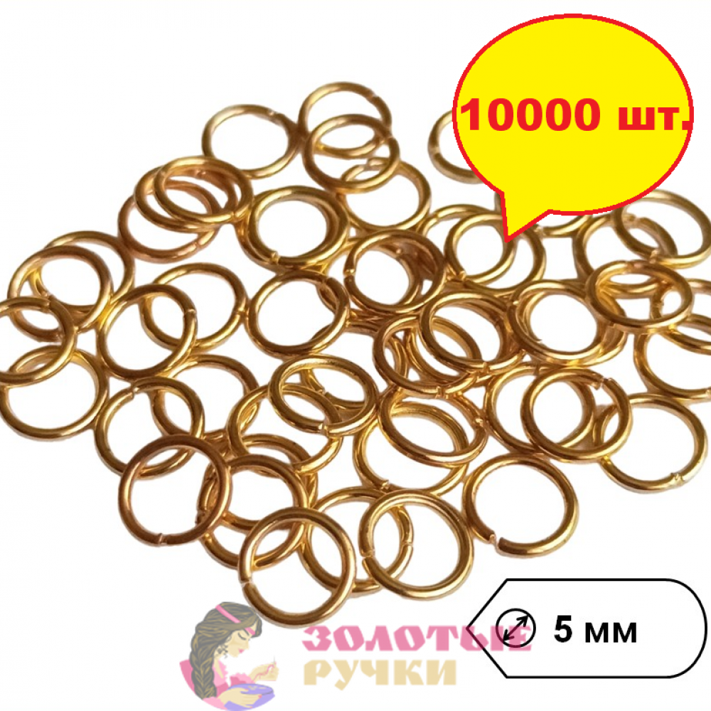 Кольцо соединительное для бижутерии. Диаметр: 5 мм. Цвет: золото. Количество в упаковке: 10000 шт.