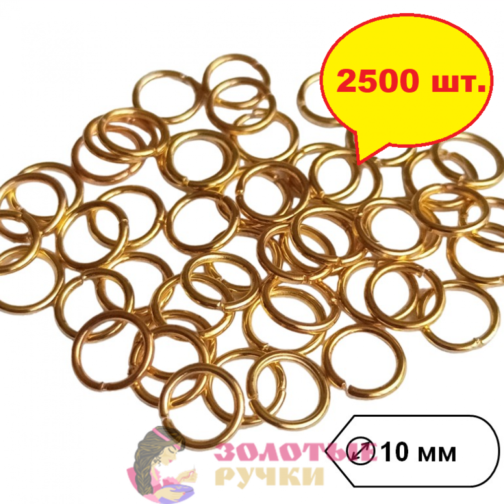Кольцо соединительное для бижутерии. Диаметр: 10 мм. Цвет: золото. Количество в упаковке: 2500 шт.