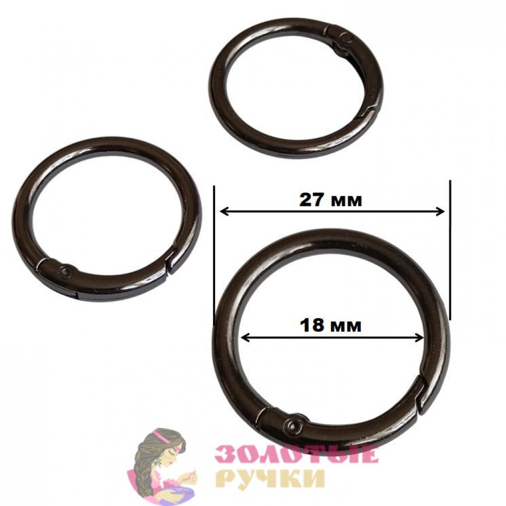 Кольцо-карабин. Внешний диаметр: 27(18) мм. Цвет: темный никель. Количество в упаковке: 10 шт.