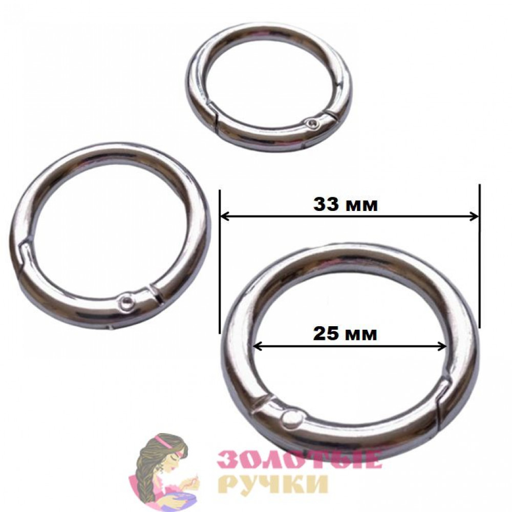 Кольцо-карабин. Внешний диаметр: 33(25) мм. Цвет: серебро. Количество в упаковке: 10 шт.