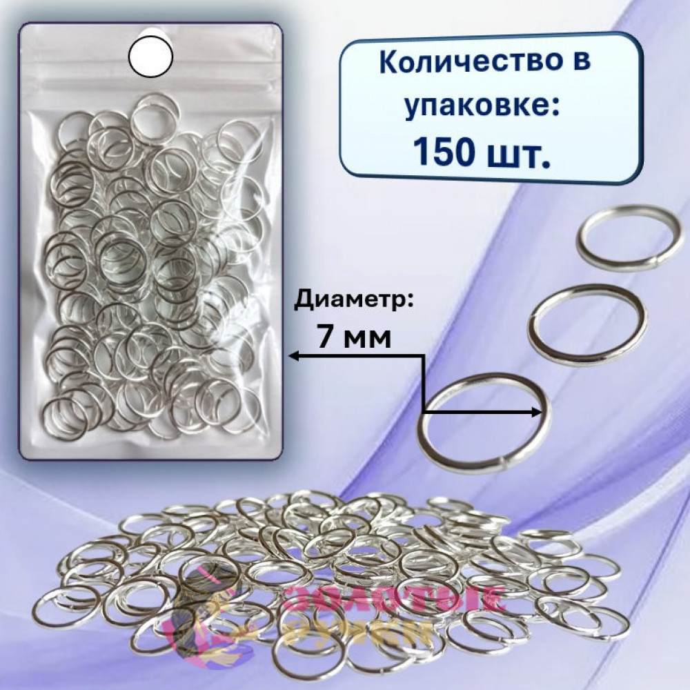 Кольцо соединительное для бижутерии. Диаметр: 7 мм. Цвет: серебро. Количество в упаковке: 150 шт.