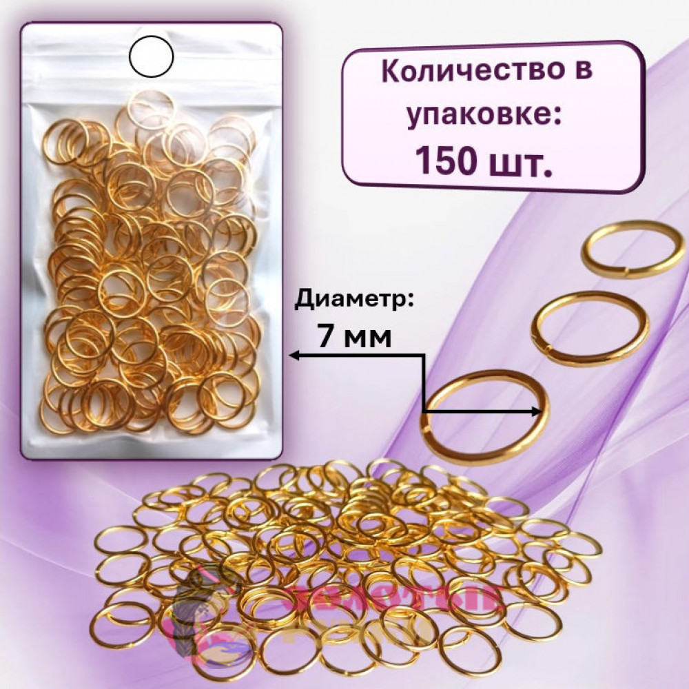 Кольцо соединительное для бижутерии. Диаметр: 7 мм. Цвет: золото. Количество в упаковке: 150 шт.