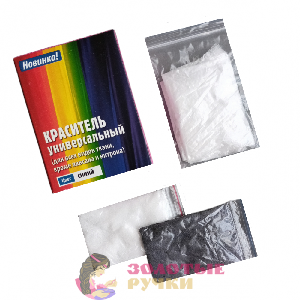 Краситель универсальный ( для всех видов ткани, кроме лавсана и нитрона). Рассчитан на 1,5 кг сухой ткани.