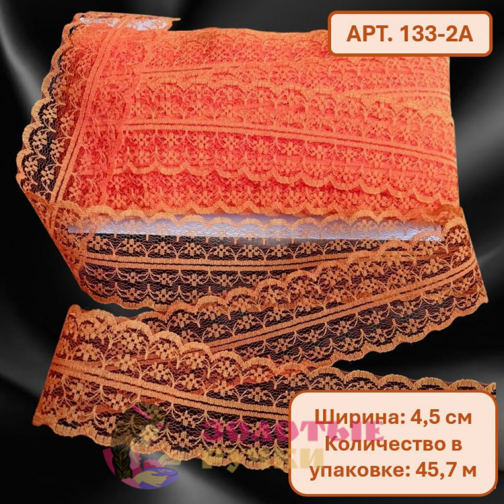 Кружево капроновое. Ширина: 4,5 см. Количество в упаковке: 45 м. Цвет: оранжевый