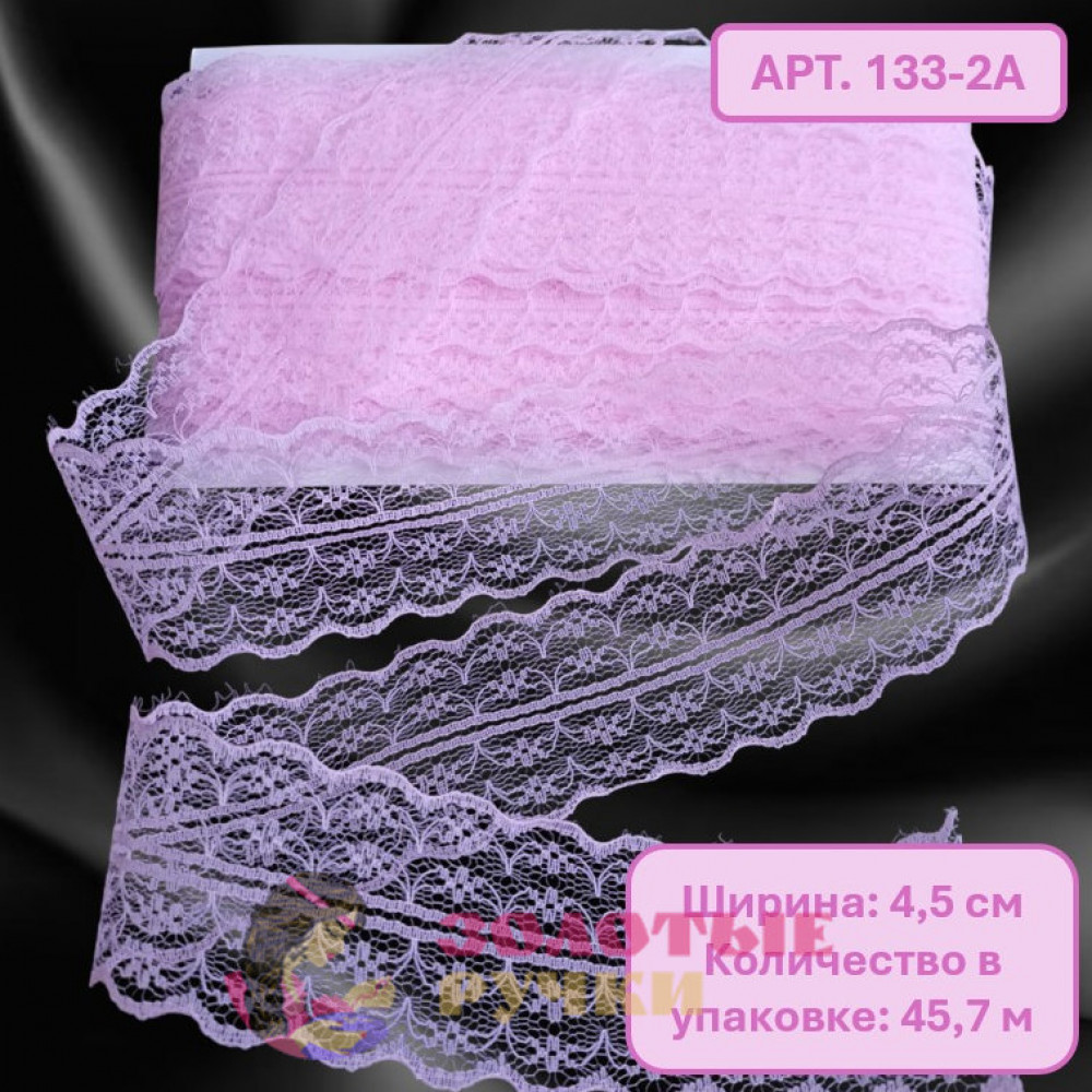 Кружево капроновое. Ширина: 4,5 см. Количество в упаковке: 45 м. Цвет: нежно-розовый