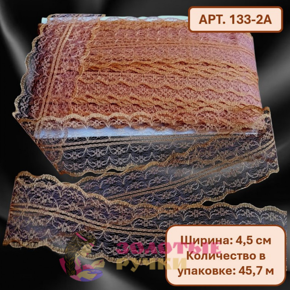 Кружево капроновое. Ширина: 4,5 см. Количество в упаковке: 45 м. Цвет: светло-коричневый