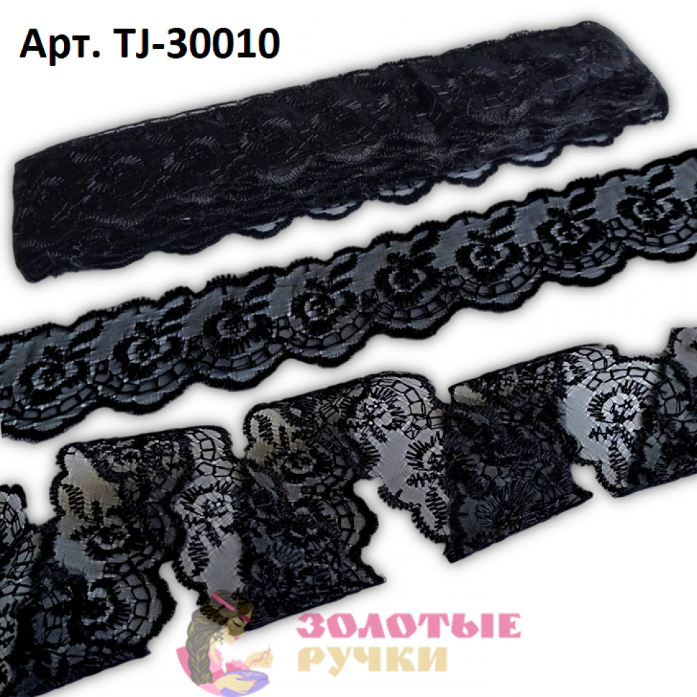 Кружево капроновое. Ширина: 4 см. Количество в упаковке: 9,5 м. Цвет: черный