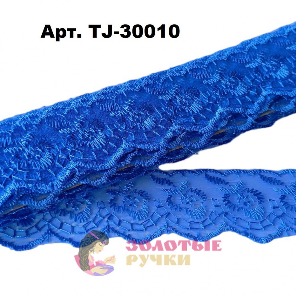 Кружево капрон, ширина 4 см, в упаковке 9,5 метров, цвет синий