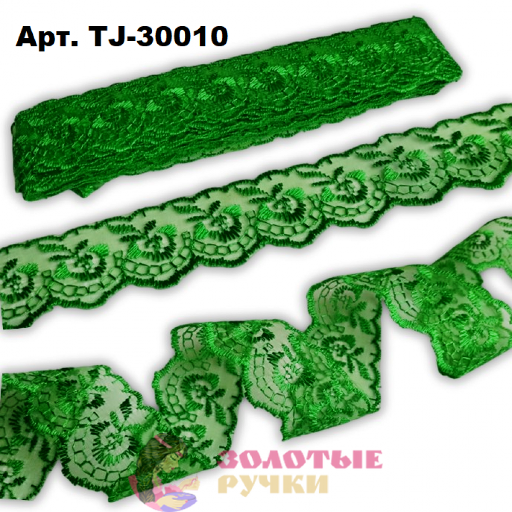 Кружево капроновое. Ширина: 4 см. Количество в упаковке: 9,5 м. Цвет: зеленый