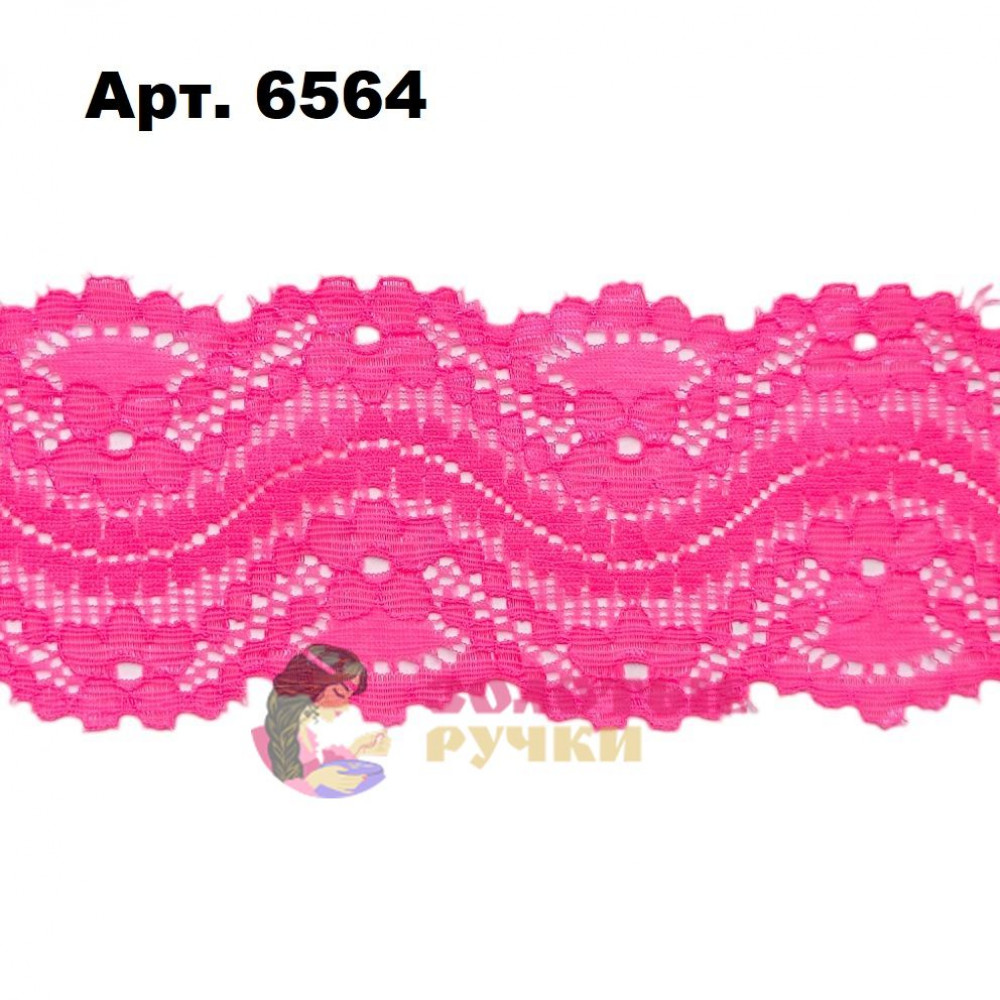 Кружево капрон, ширина 5,5 см, намотка 9,5 метров, цвет ярко розовый - нежный ажурный материал, способный стать утонченным украшением любого изделия. Каждое кружево имеет уникальный рисунок. Можно использовать в качестве подкладки или наружной отделки различных видов «базовой» одежды, нижнего белья, игрушек, аксессуаров и т.д.