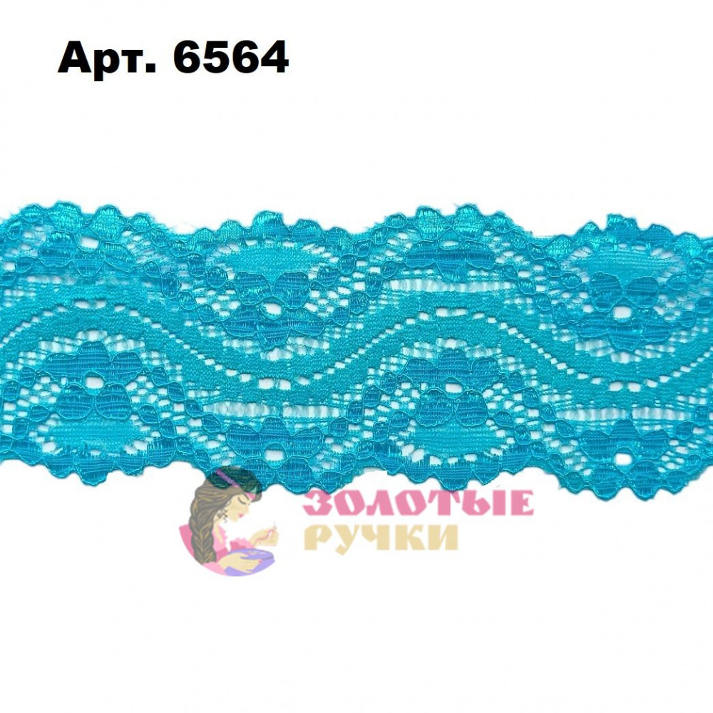 Кружево капрон, ширина 5,5 см, намотка 9,5 метров, цвет бирюзовый