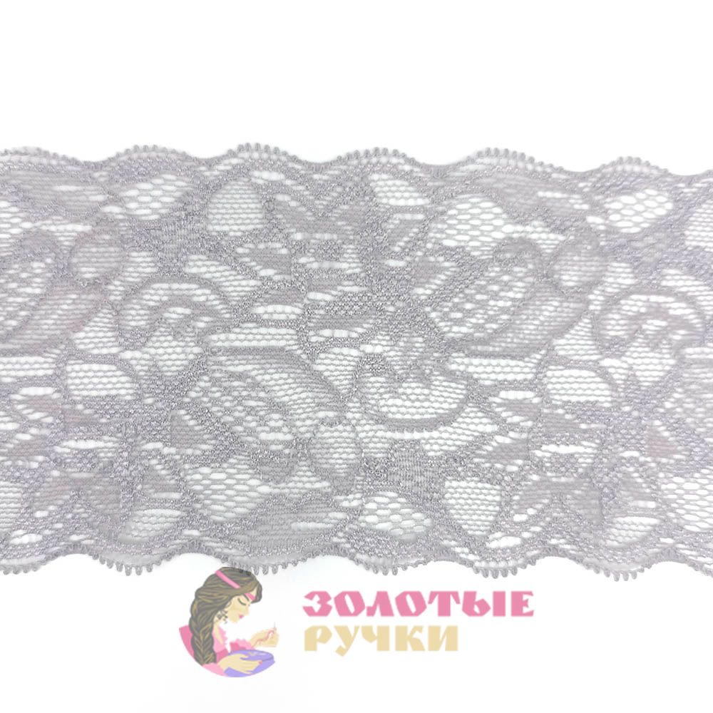 Кружево капрон, стрейч 8 см, намотка 9,5 метров, цвет светло серый