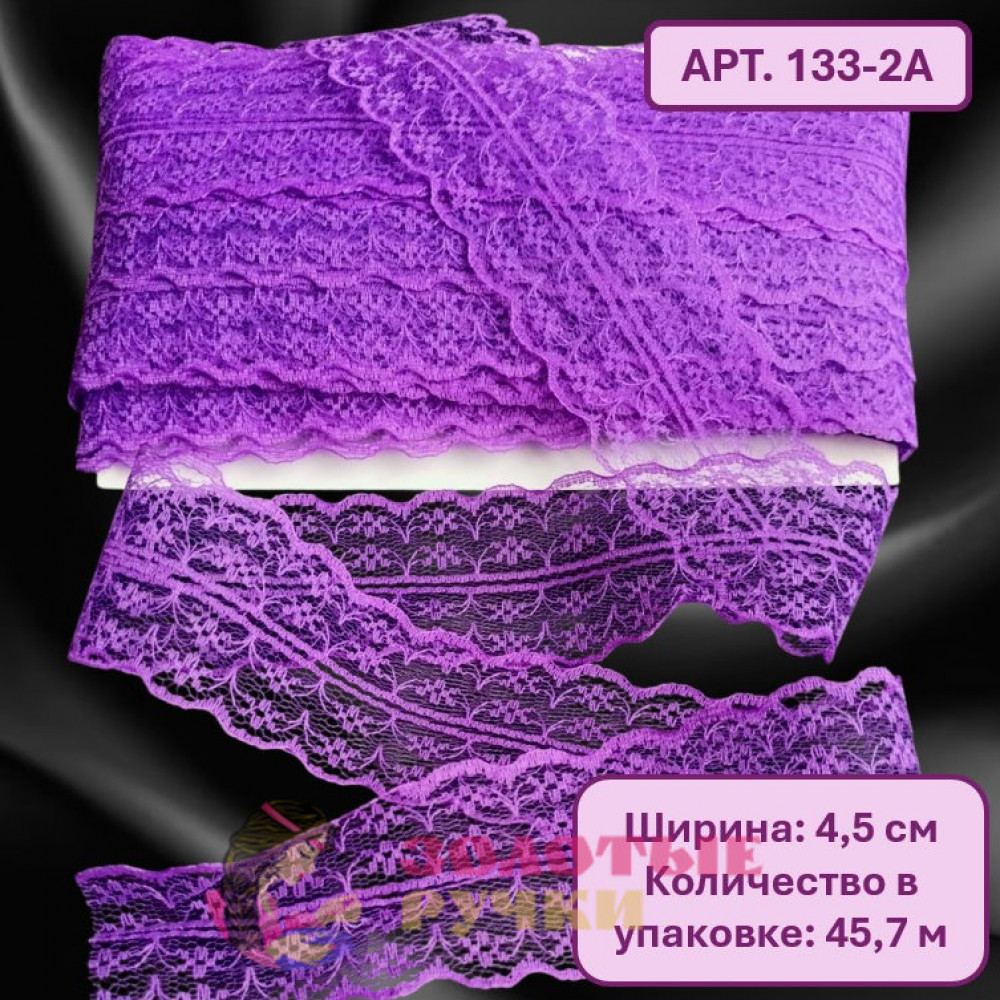Кружево капроновое. Ширина: 4,5 см. Количество в упаковке: 45 м. Цвет: фиолетовый