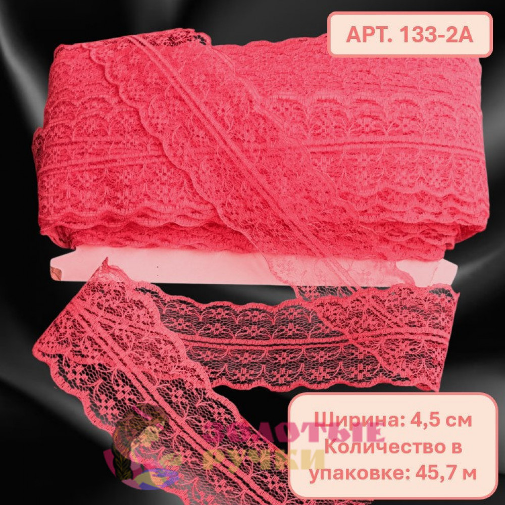 Кружево капроновое. Ширина: 4,5 см. Количество в упаковке: 45 м. Цвет: темно-розовый