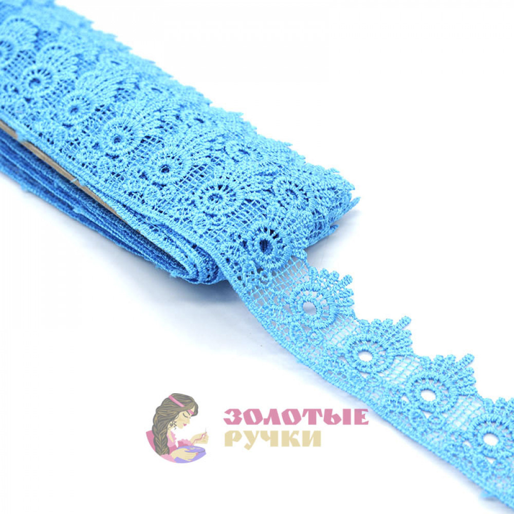 Кружево плетеное, ширина 5 см, в упаковке 9,5 метров, цвет голубой