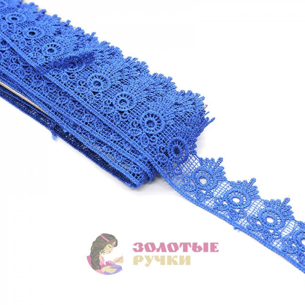 Кружево плетеное, ширина 5 см, в упаковке 9,5 метров, цвет василёк