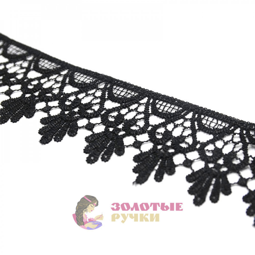 Кружево плетеное, ширина 6 см, в упаковке 9,5 метров, цвет чёрный