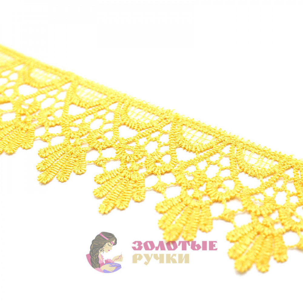 Кружево плетеное, ширина 6 см, в упаковке 9,5 метров, цвет жёлтый - нежный ажурный материал, способный стать утонченным украшением любого изделия. Каждое кружево имеет уникальный рисунок. Можно использовать в качестве подкладки или наружной отделки различных видов «базовой» одежды, нижнего белья, игрушек, аксессуаров и т.д.