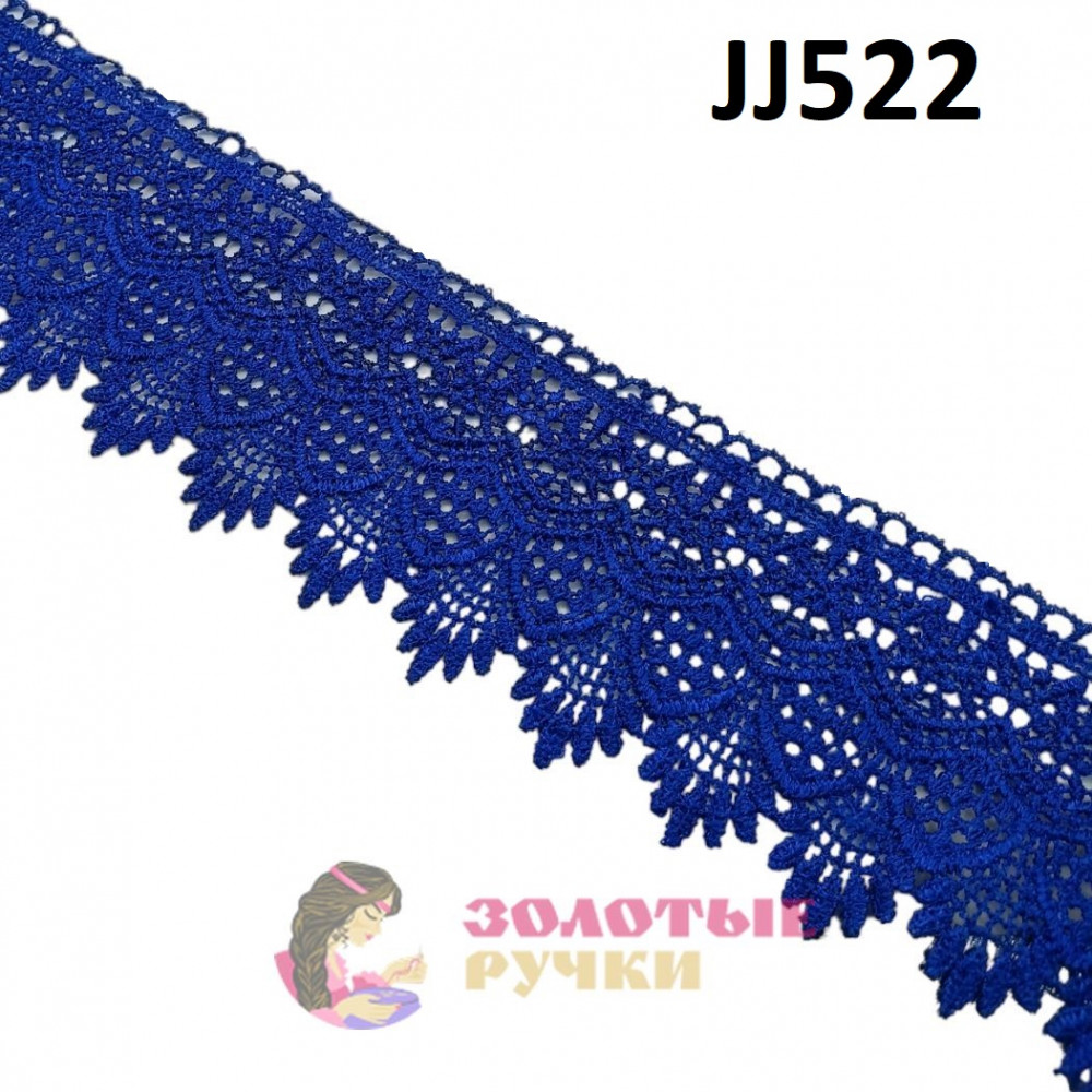 Кружево плетеное, ширина 7,5 см, в упаковке 9,5 метров, цвет синий