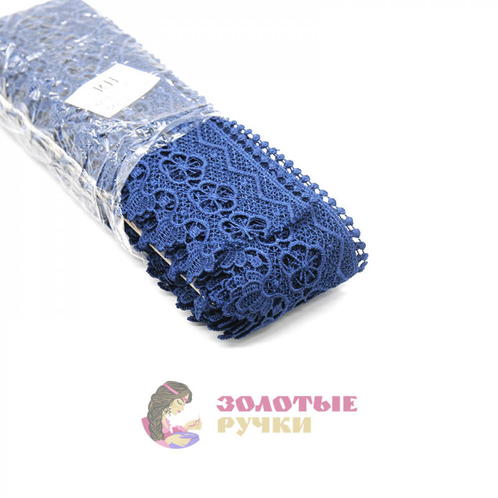 Кружево плетеное, ширина 8 см, в упаковке 9,5 метров, цвет темно синий