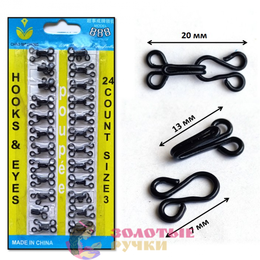 Крючки пришивные бельевые №3. Цвет: черный