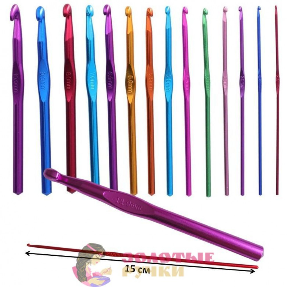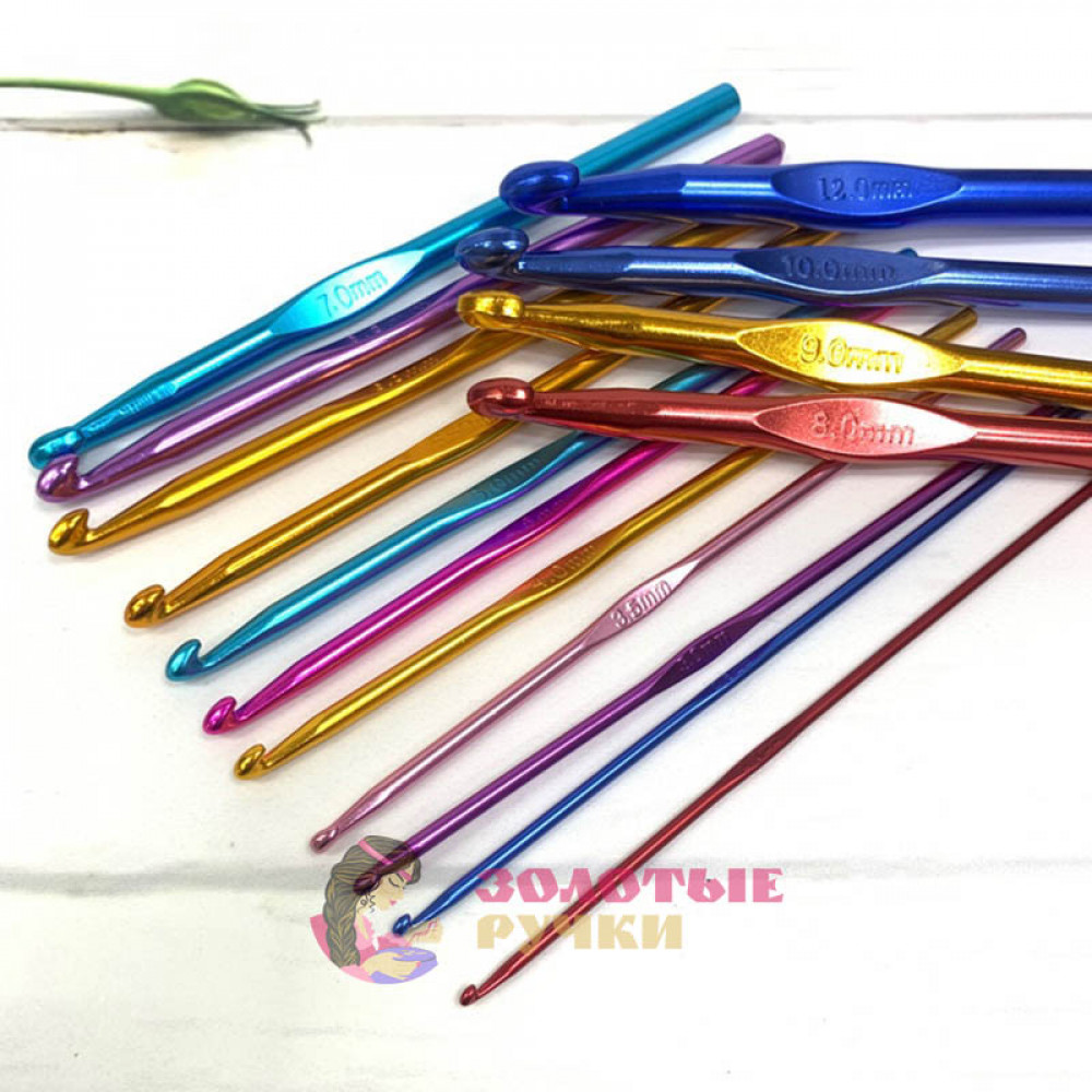 Крючки для вязания алюминиевые. Размеры: 2-12 мм. Количество в упаковке: 10 шт.