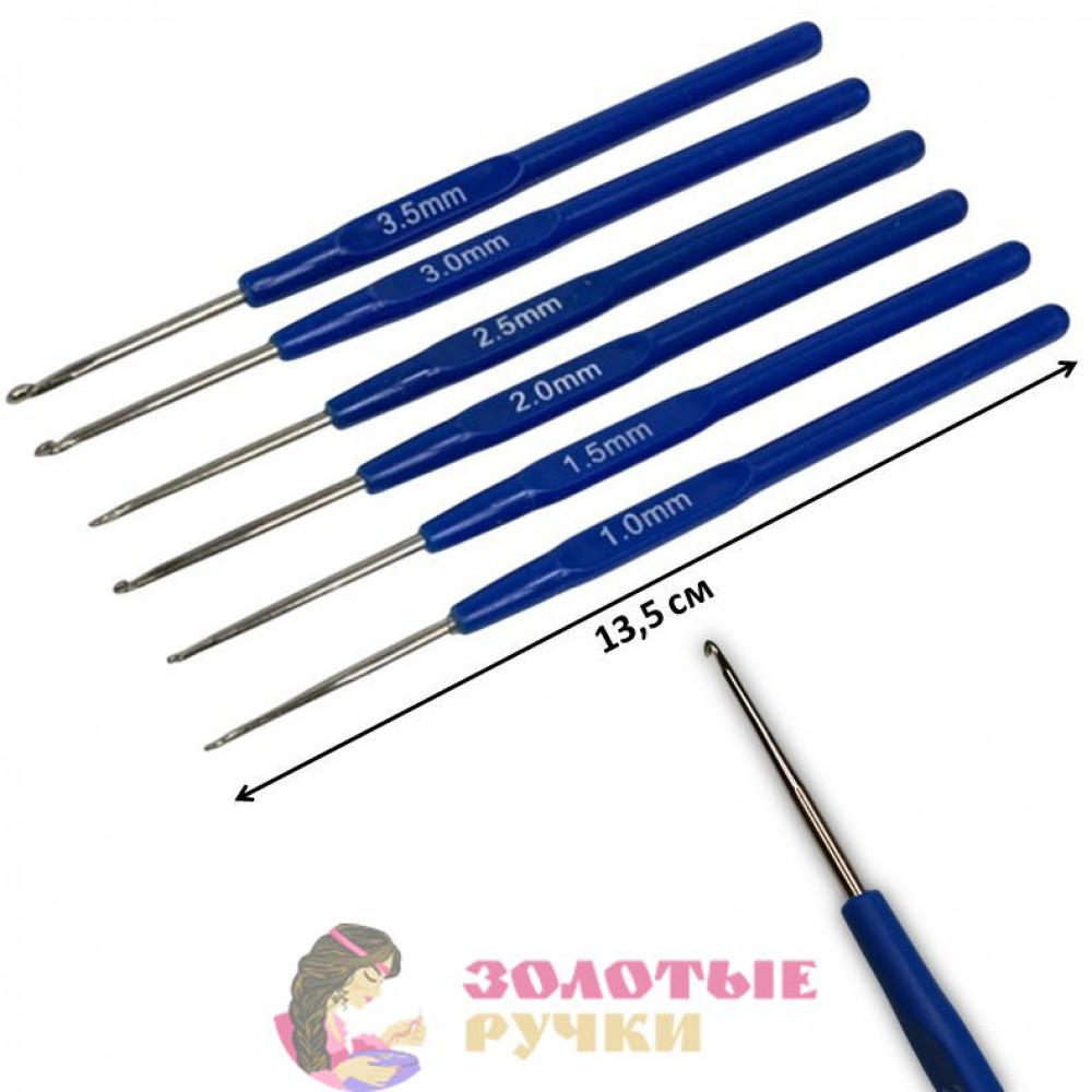 Крючки для вязания металлические с пластиковой ручкой. Размеры: 1-3,5 мм. Количество в упаковке: 10 шт.