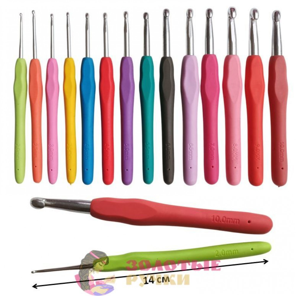 Крючки для вязания металлические с силиконовой ручкой. Размеры: 2-10 мм. Количество в упаковке: 10 шт.