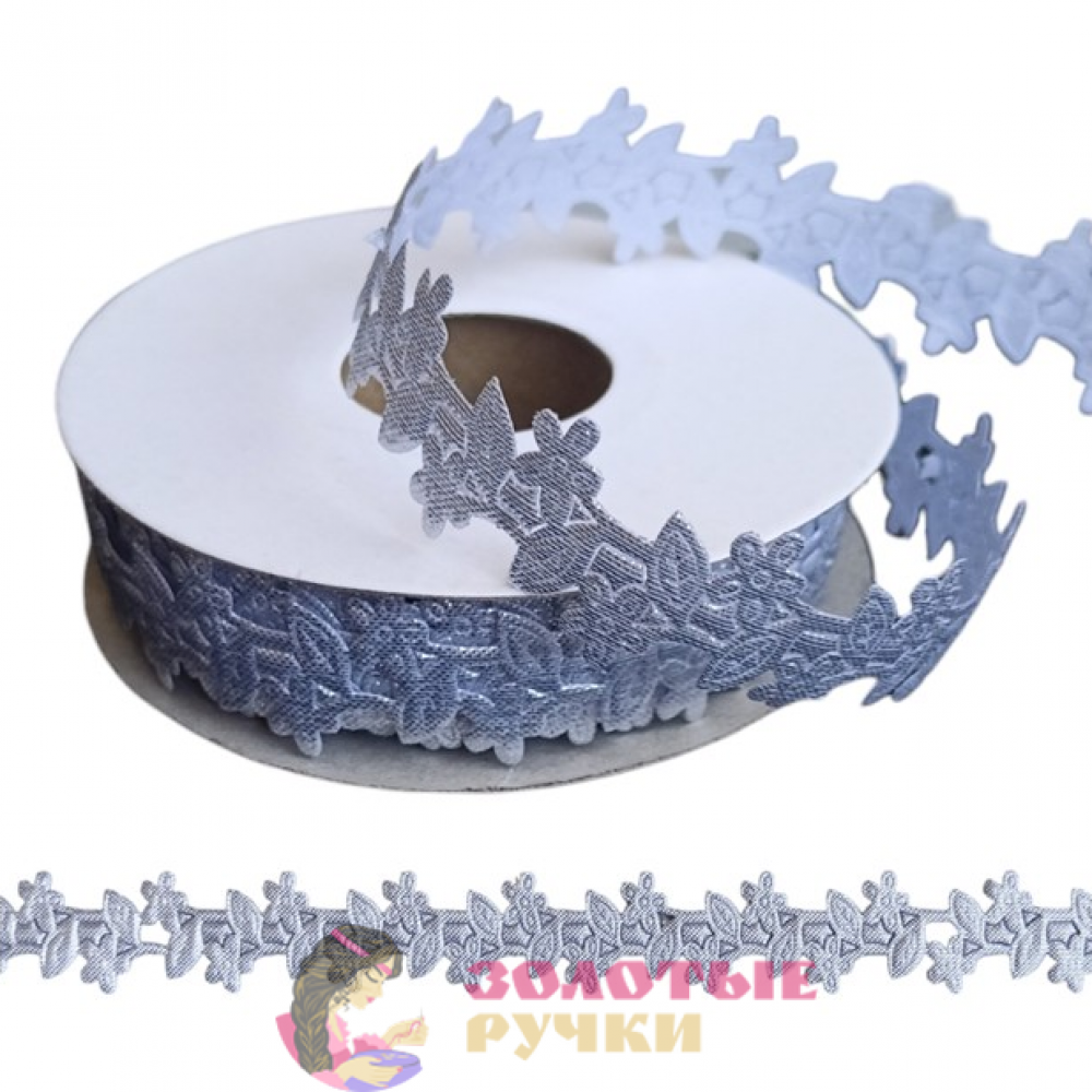 Лента декоративная атласная с цветочным узором. Цвет: серебро. Ширина: 20 мм. Количество в упаковке: 9,144 м