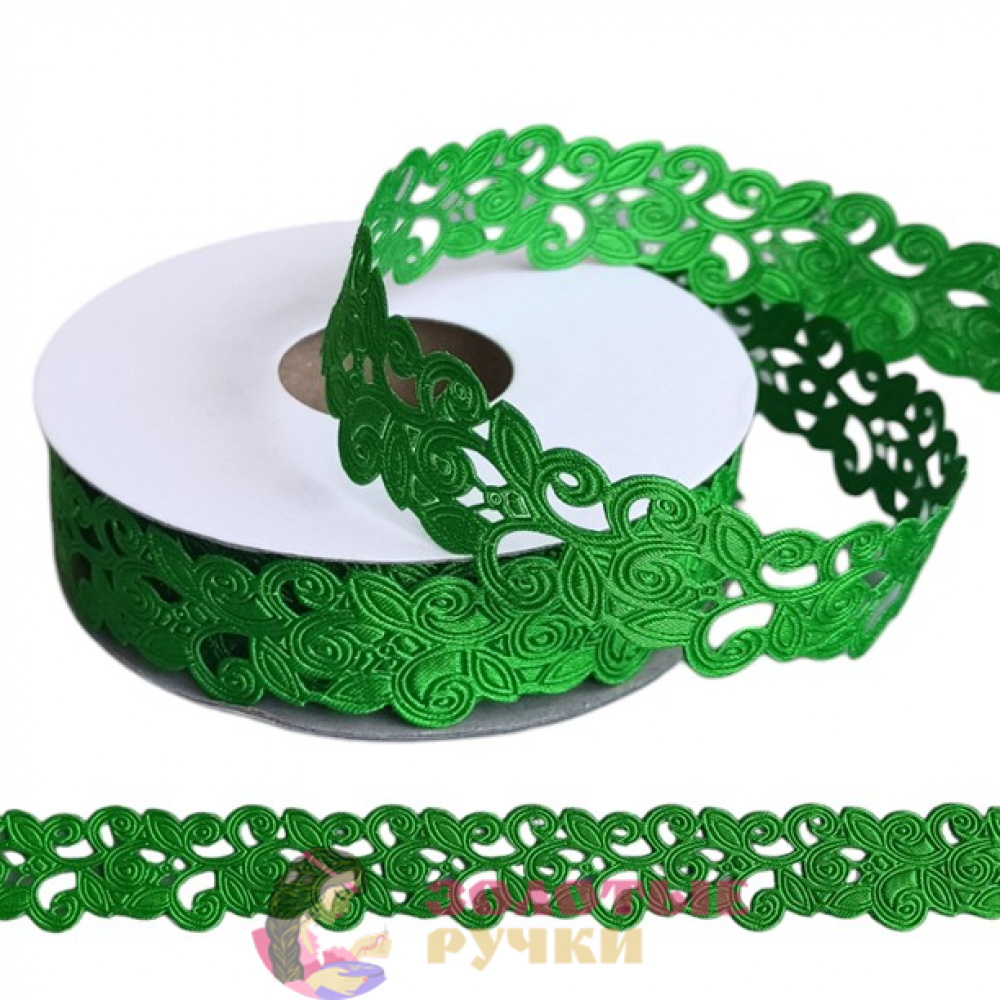 Лента декоративная атласная с цветочным узором. Цвет: зеленый. Ширина: 20 мм. Количество в упаковке: 9,144 м