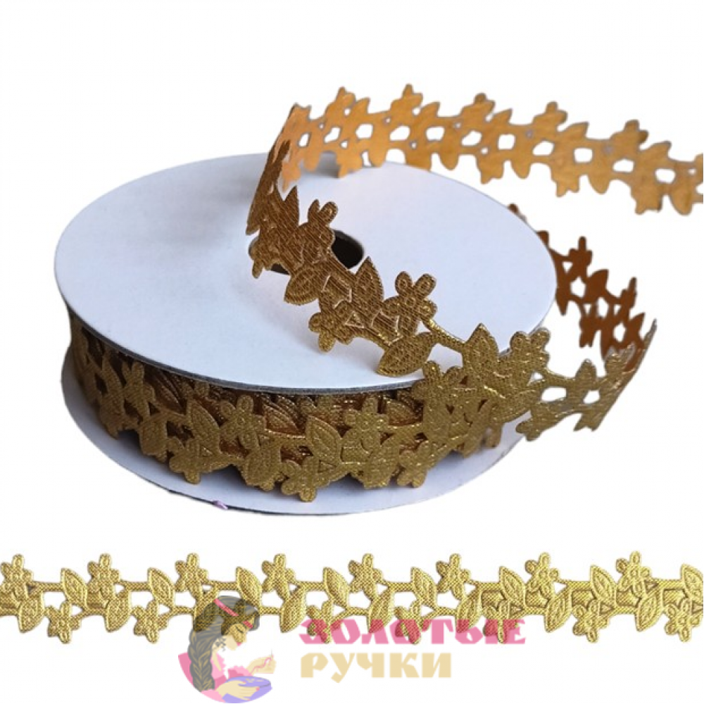 Лента декоративная атласная с цветочным узором. Цвет: золото. Ширина: 20 мм. Количество в упаковке: 9,144 м