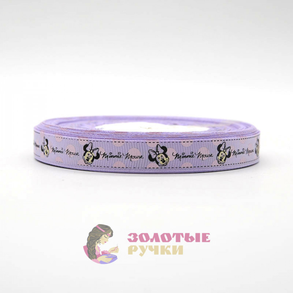 Лента декоративная репсовая (уп. 25 ярд) ширина 12мм "мики маус" сиреневый