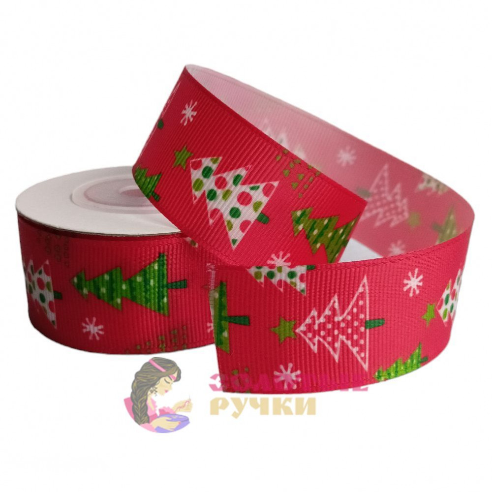 Лента декоративная репсовая "Новый год". Ширина: 25 мм. Цвет: красный.
