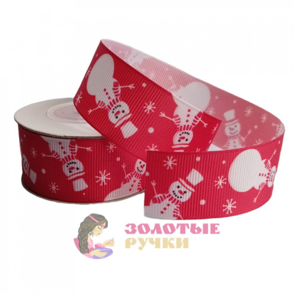 Лента декоративная репсовая "Новый год". Ширина: 25 мм. Цвет: красный.