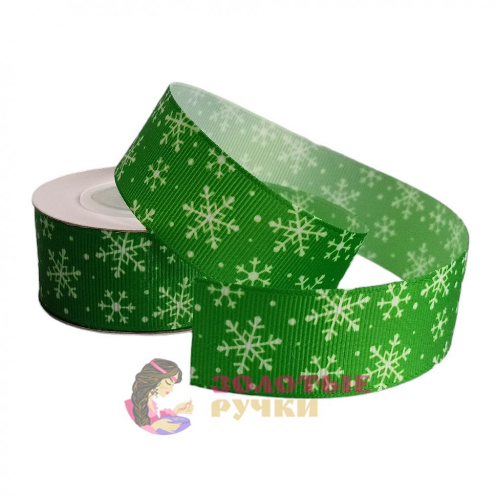 Лента декоративная репсовая "Новый год". Ширина: 25 мм. Цвет: зеленый.