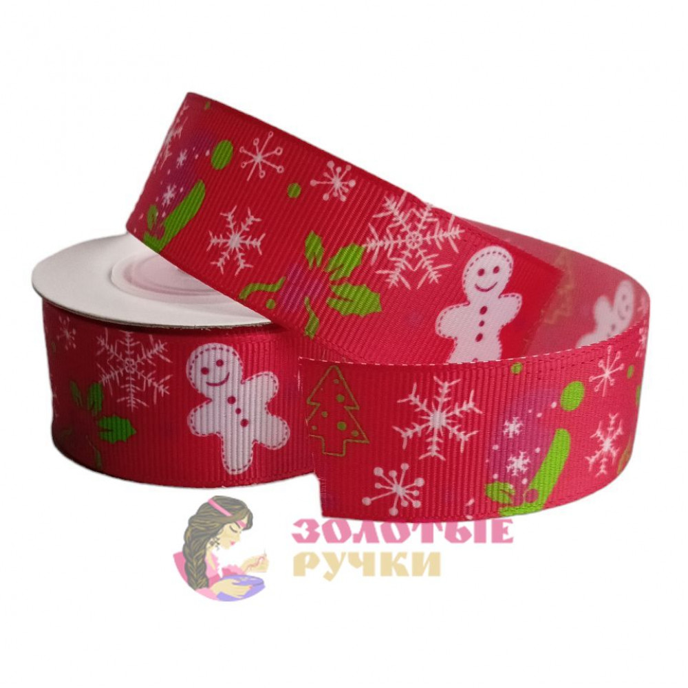 Лента декоративная репсовая "Новый год". Ширина: 25 мм. Цвет: красный.