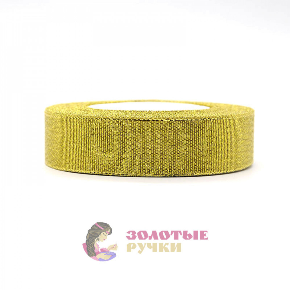 Лента декорированная металлизированная (люрекс). Ширина: 25 мм. Цвет: золото