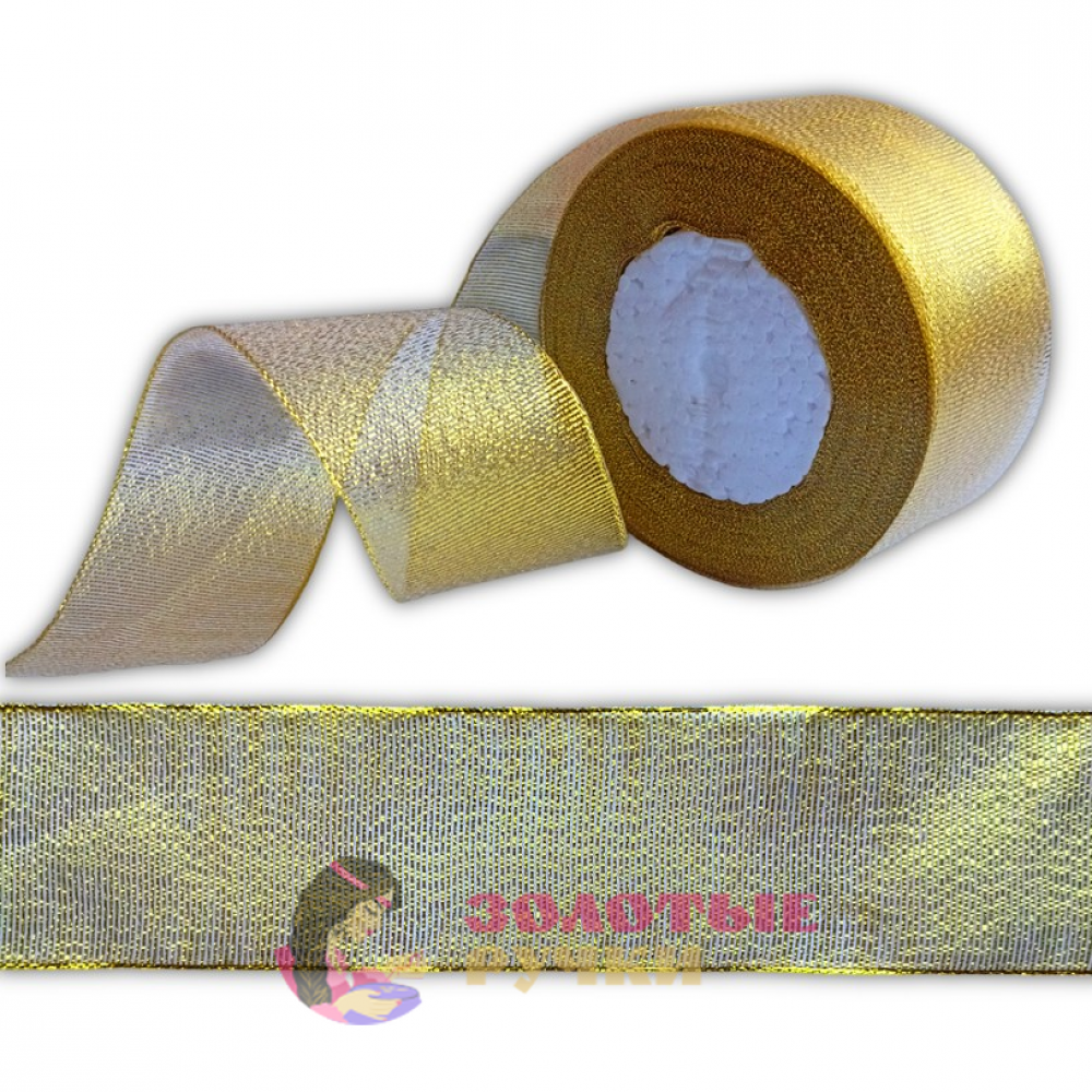 Лента декорированная металлизированная (люрекс). Ширина: 50 мм. Цвет: золото
