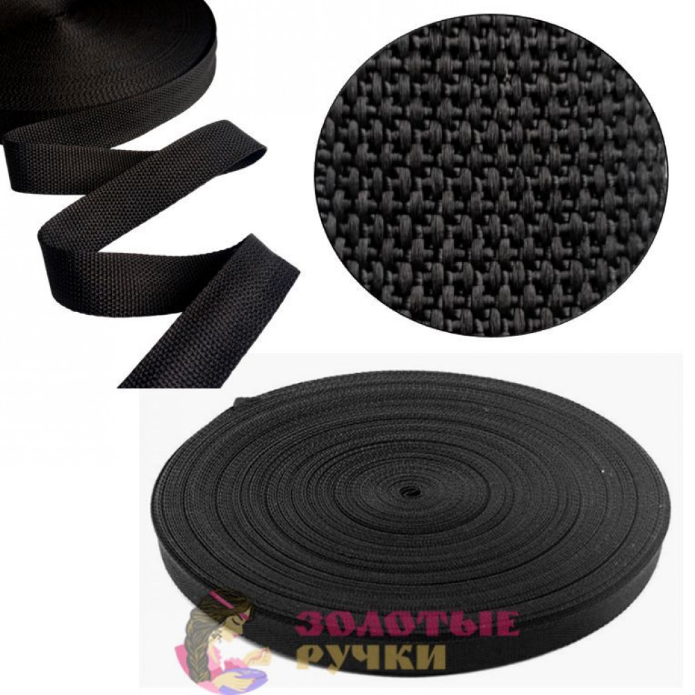 Лента ременная (стропа). Ширина: 20 мм. Цвет: черный. Количество в упаковке: 50 м