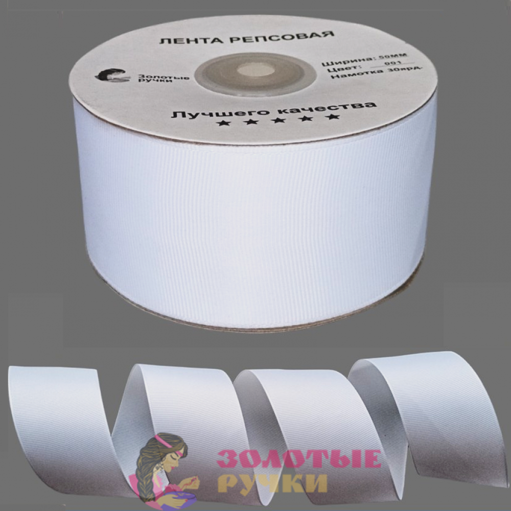 Лента репсовая. Ширина: 50 мм. Цвет: белый.