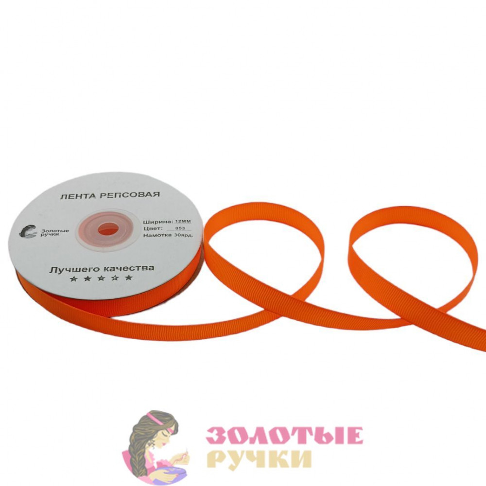 Лента репсовая в рулонах по 30 ярдов, ширина 12 мм, цвет 053 ярко-оранжевый