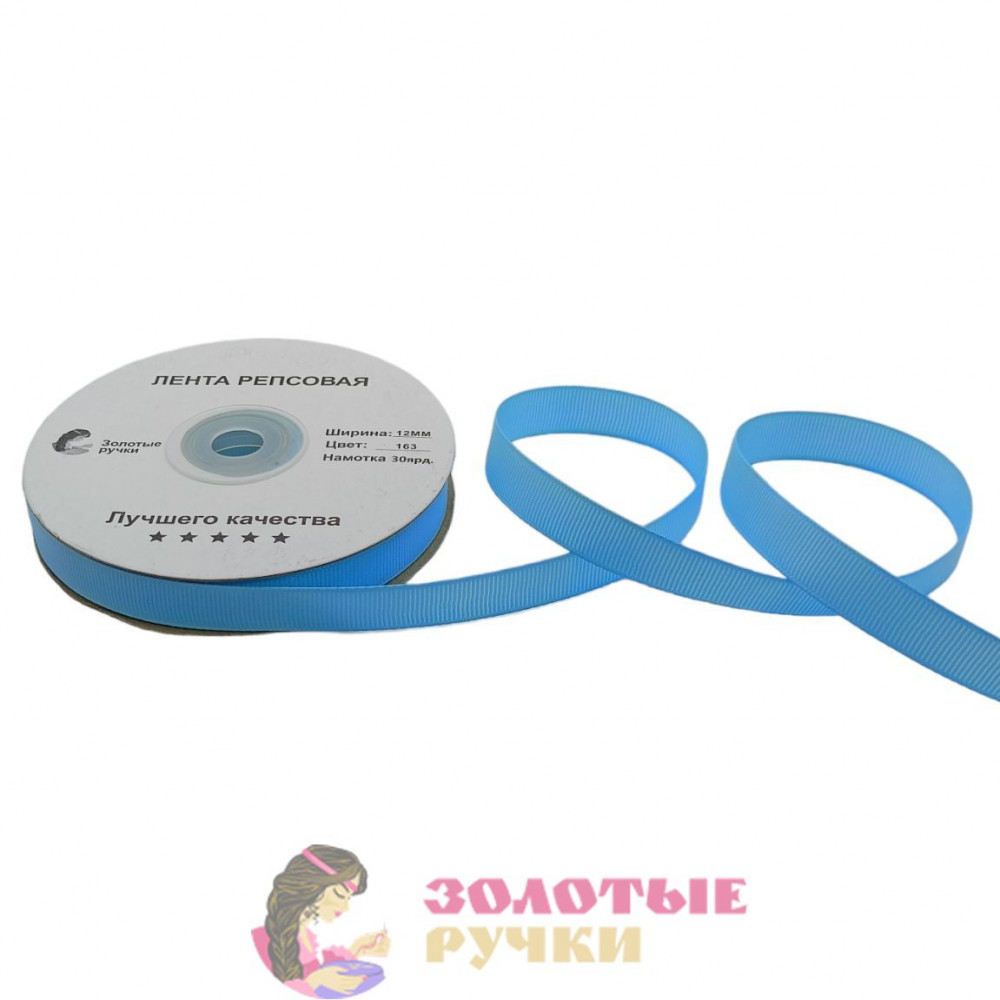 Лента репсовая в рулонах по 30 ярдов, ширина 12 мм, цвет 163 голубой