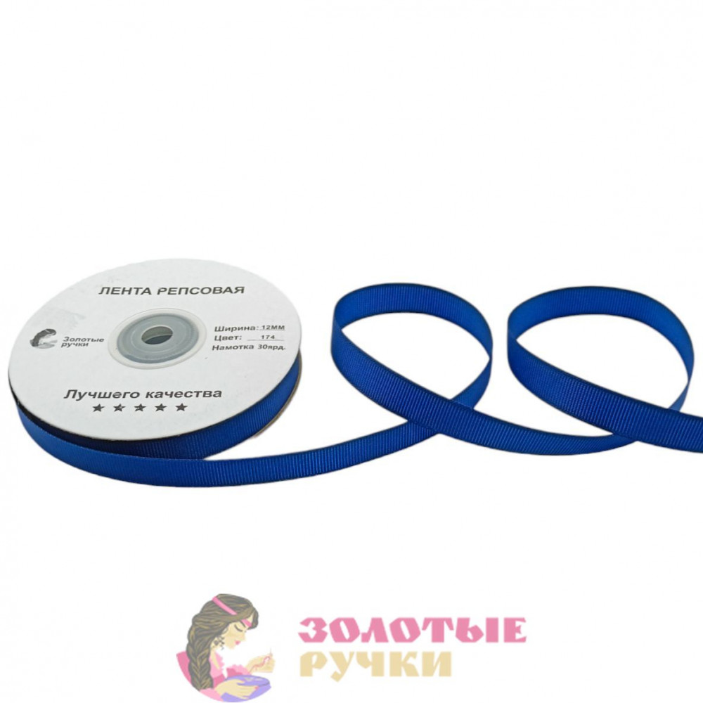 Лента репсовая в рулонах по 30 ярдов, ширина 12 мм, цвет 174 темно-синий