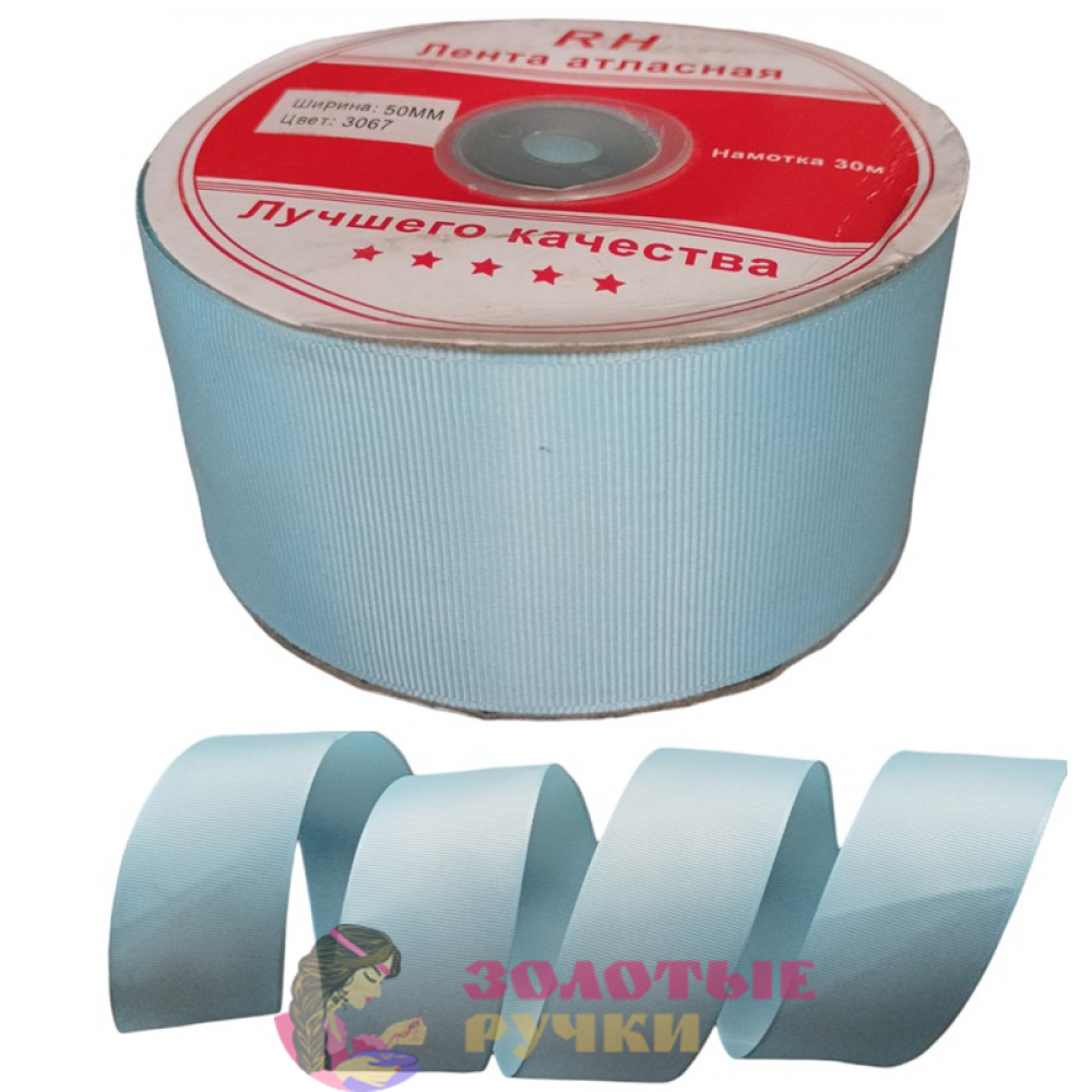 Лента репсовая. Ширина: 50 мм. Цвет: голубой.