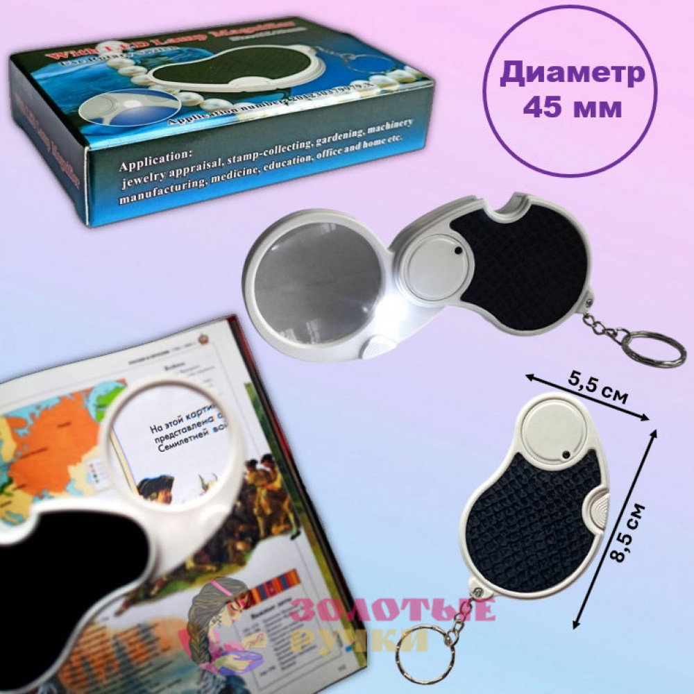 Лупа карманная складная с подсветкой. Диаметр: 45 мм