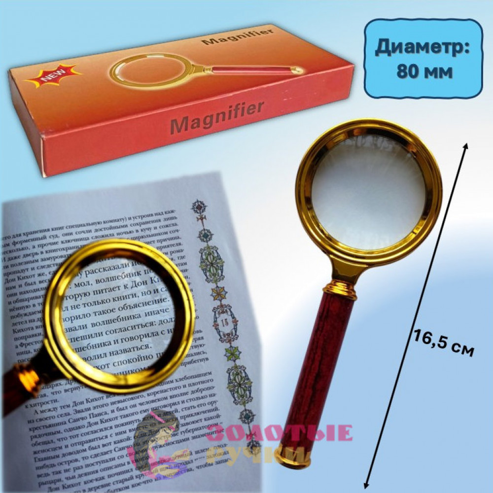 Ручная увеличительная лупа "Magnifier" предназначена для чтения мелкого и среднего шрифта, изучения карт и иллюстраций, мелких схем и микросхем, рукоделия.