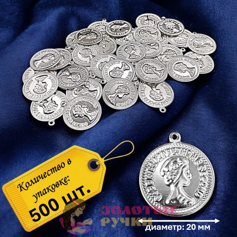 Монетки декоративные. Диаметр: 20 мм. Цвет: серебро. Количество в упаковке: 500 шт.