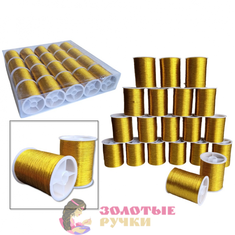 Набор ниток люрекс для творчества и рукоделия. Толщина: 0,14 мм. Количество в упаковке: 20 шт. по 100 м. Цвет: золото.