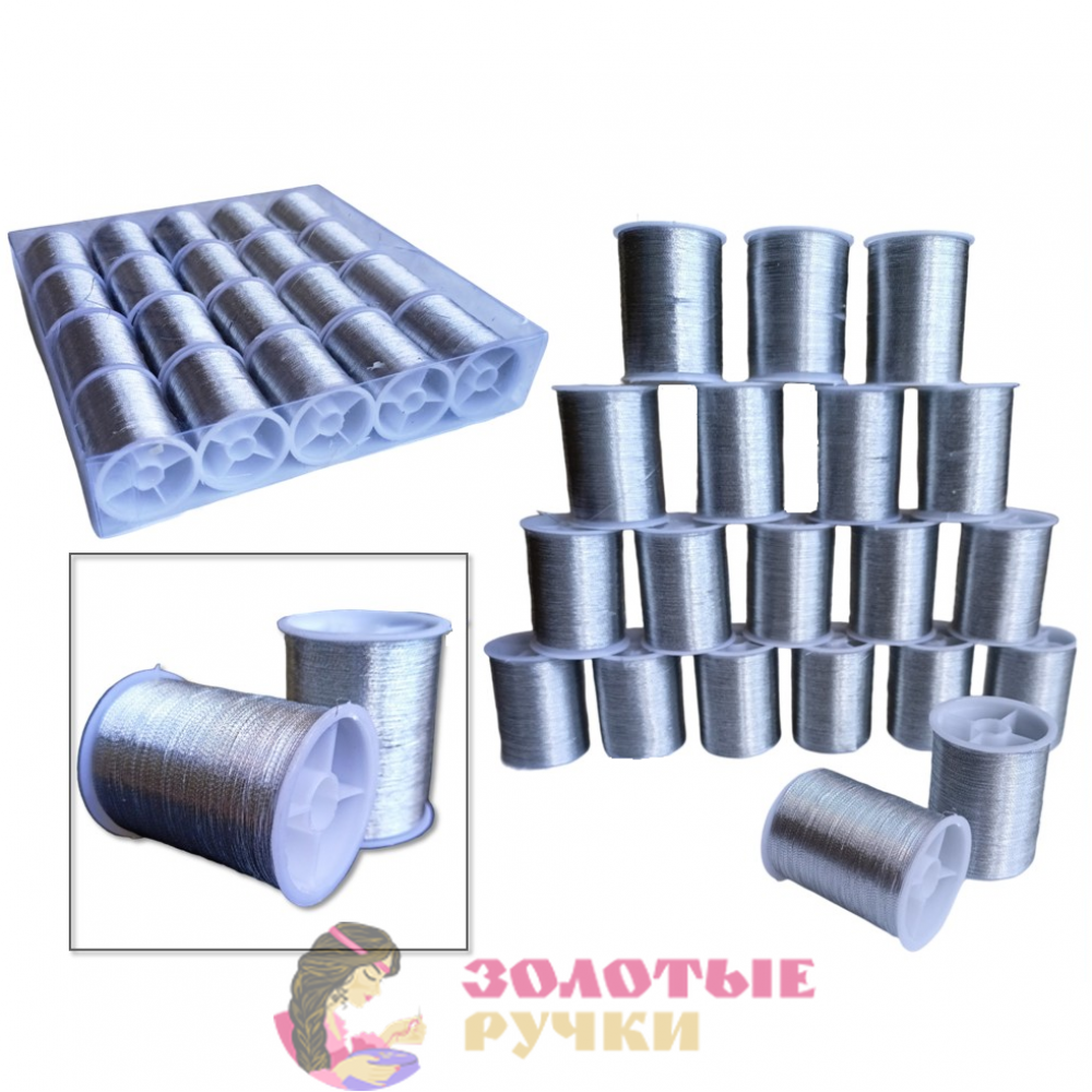 Набор ниток люрекс для творчества и рукоделия. Толщина: 0,14 мм. Количество в упаковке: 20 шт. по 100 м. Цвет: серебро.
